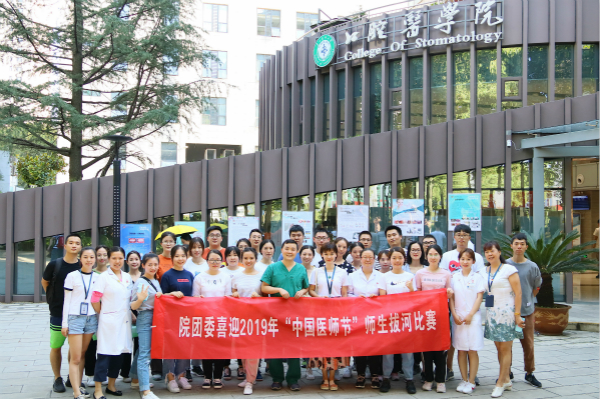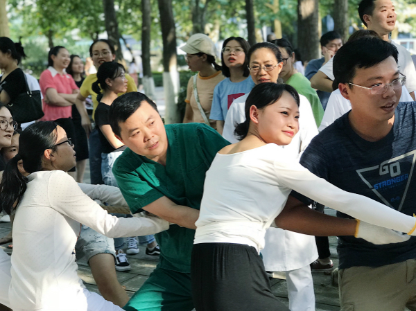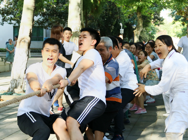 为增进全院教职医护员工生之间的沟通与交流,丰富大家的业余文化生活,8月15日,院团委组织师生在williamhill官网附属口腔医院门前广场开展了喜迎2019年“中国医师节”师生拔河比赛。党委书记张军梅,副经理王永,党委副书记钱禾带领啦啦队为选手助威。经过激烈角逐,教职工2组获得冠军。