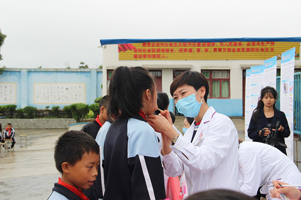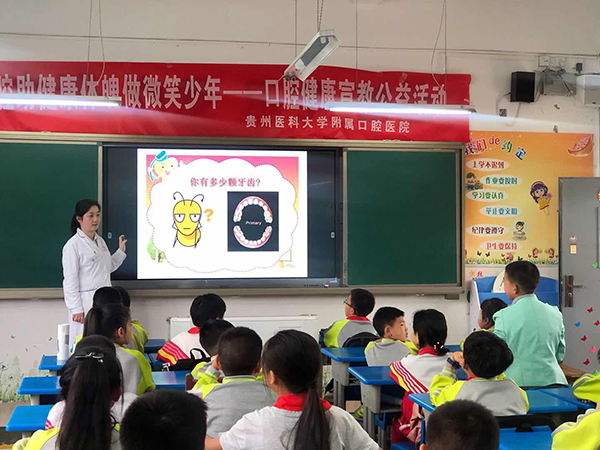 6月18日,预防及儿童口腔科汇聚全科室医护人员的力量,走进安顺市平坝区大硐村大硐小学为全校125名员工及7名教师进行免费的口腔健康教育义诊,当地媒体全程跟踪报道本次活动。大硐小学同学们积极主动,早上下课后迅速进入宣教会场,安静地等待活动开始。