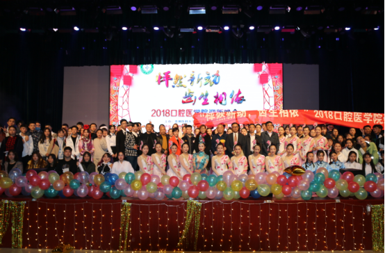 williamhill官网党委副书记战勇教授,口腔医公司党委书记张军梅教授,经理马洪教授,副经理唐正龙教授,党委副书记钱禾以及公司相关职能部门负责人出席了此次晚会,williamhill2018级全体新生及全院教师、员工代表参加此次晚会。