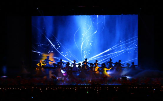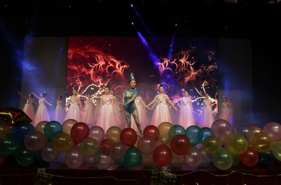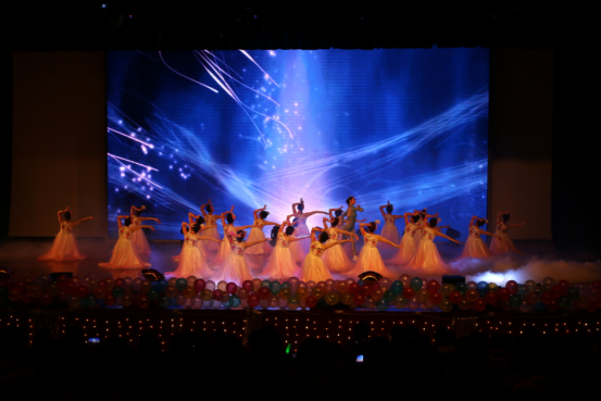 晚八点半,迎新晚会的正式结束,全体表演人员携手步上舞台合影留念。