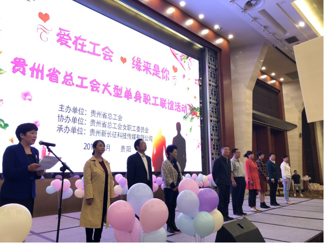 9月29日,公司组织多名单身职工参加在贵阳国际生态会议中心举行的,省总工会2018年“爱在工会·缘来是你”大型单身职工联谊活动。省人大常委会党组副书记、副主任、省总工会主席袁周出席。省总工会党组书记、副主席杨再春讲话。省总工会党组成员、副主席、女职工委员会主任魏俊主持活动。