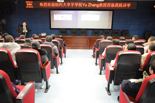 走访临床实验中心后,并于当日上午在北校区(老药学楼)5楼学术报告厅,YU ZHANG 教授作题为“Recent Advances in Ceramics for Dental Restorations牙科修复陶瓷材料的最新研究进展”的学术讲座。