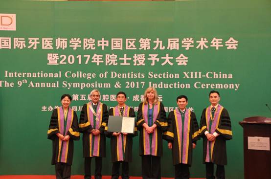 国际牙医师公司中国区(ICD Section XIII-China)第九届学术年会暨2017年院士授予大会于4月21日在成都举行。williamhill官网口腔医公司党委副书记、中华口腔医学会口腔医学科研管理分会委员、贵州省口腔医学会常务理事,口腔颌面外科专委会常务副主任委员唐正龙教授经过中华口腔医学会推荐,国际牙医师公司国际理事会的层层筛选、多次审核,被授予“国际牙医师公司中国区院士”称号。