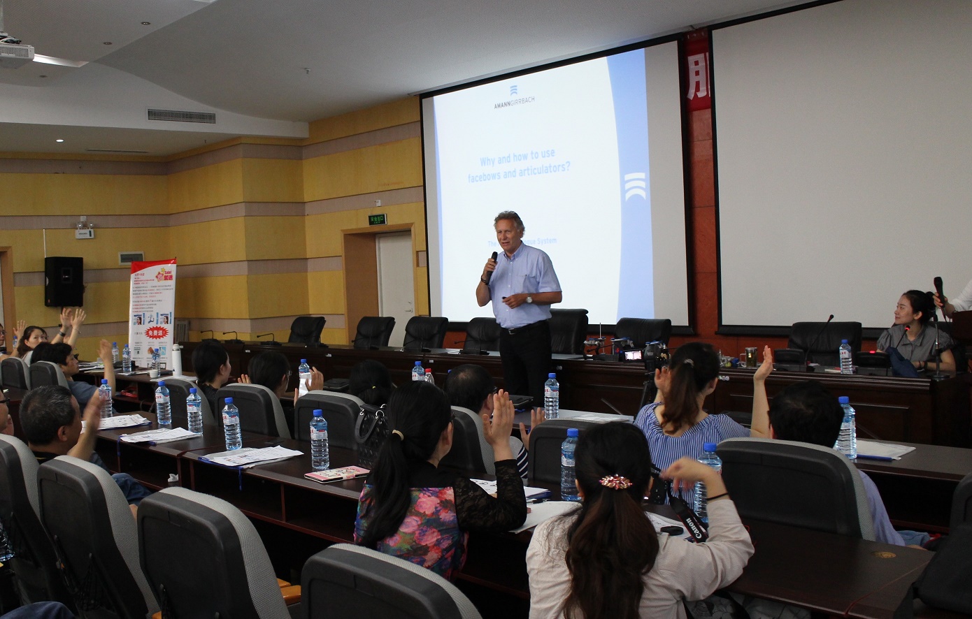 学术讲座主讲人Mr .Christoph Becker在口腔行业工作了35年。18年前,这位有“颌架大师”之称的德国人在北京大学附属口腔医院进行颌学应用讲座,成为在中国进行此类讲座第一人。此次是Mr .Christoph Becker在国内进行的第六场巡回演讲,他为省内口腔专业人士进行了大约三小时的英文学术交流讲座,由williamhill贾莹副教授、蒋韵娴讲师翻译。内容围绕:面弓与颌架的原理及其使用、颌架与CAD/CAM完美结合的数字化修复技术进行。