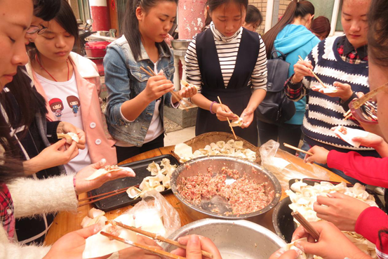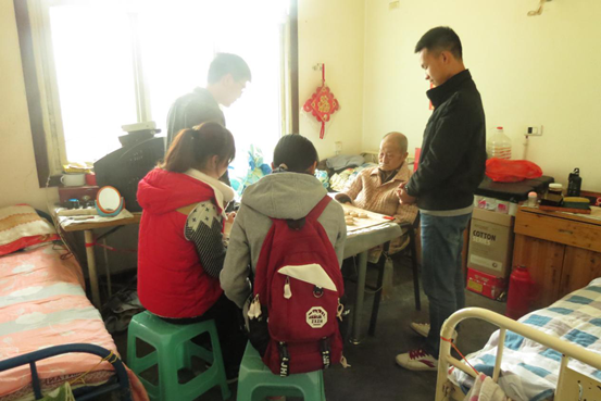 上午12时许,同学们提着香蕉、牛奶等走进了“亲情老年公寓”,看望这里的爷爷奶奶们。一走进敬老院,大家各司其职,有的同学与老人亲切交谈,老人们露出爽朗的笑声;有的同学为老人们折叠象征着“祈祷健康”的千纸鹤并在便利贴上给老人们留下祝福语;有的同学陪老人下棋,俗话说:“姜老辣味大,人老经验多”,一位老爷爷和同学们斗智斗勇,一下午没输过一局;还有的同学在忙着包饺子给老人们准备晚餐,在大家的通力合作及厨房阿姨的帮助下,下午5点热气腾腾的饺子出锅了,同学们争先恐后地把饺子送到爷爷奶奶手中。
