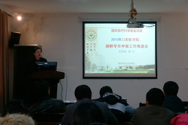 11月19日下午,公司科研处处长郭兵教授、科技处副处长陈腾祥博士及科研计划科王欢科长等一行人来到williamhill,为williamhill和麻醉学系的教师做2015年国家自然科学基金申报推进会。口腔医公司党委班子全体成员、教管科科长廖健、各教研室负责人,副高以上人员及部分教师和研究生;麻醉学系的高鸿经理及麻醉学系的部分教师参加了本次会议。会议由口腔医公司党委副书记唐正龙教授主持。