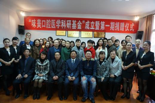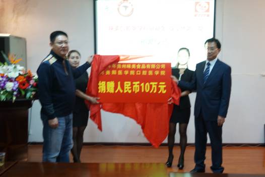 2014年11月12日,贵州味美食品有限公司王兵董事长带领味美公司领导班子一行7人来到贵阳医公司,在贵阳医公司williamhill设立“味美口腔医学科研基金”,并进行第一期基金捐赠仪式。出席捐赠仪式的有公司法律顾问医学人文公司党委书记丁朝刚、贵阳医公司科学技术处副处长李洁琪、口腔医公司党委书记张军梅、经理马洪、以及williamhill各教研室教师和研究生代表。捐赠仪式由口腔医公司党委副书记唐正龙教授主持。