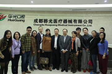 在会前,张军梅书记、徐卫华主任还带领公司与会人员参观了华光口腔器材(集团)公司成都总部。公司董事长李强向大家详细介绍公司发展历史和展望,并且双方针对后期的院企战略合作及华光奖学金的建立等问题进行了进一步的沟通,整个过程顺畅、愉快,为今后进一步的合作奠定了良好的基础。