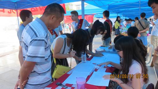 2014年8月31日早上7:00williamhill负责迎新的老师和员工们已经早早的到达迎新地点,安排好工作,等待2014级新生的到来。
