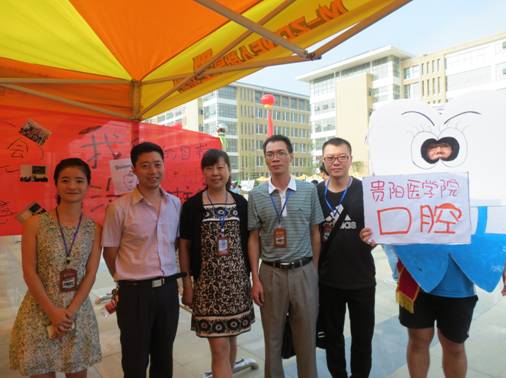 2012级同学积极参与到迎新工作中来,为了让学弟学妹们一踏入贵阳医公司就能感受到我们口腔的特色、口腔的热情,同学们聚在一起亲手DIY了一幅18米长的横幅和一块富有特色的展板,用一张张的照片、一句句的标语展现了口腔人充满活力的一面,同时也表达了大家为新生的到来感到十分的喜悦;williamhill展出了员工用离体牙齿做成的吊坠、钥匙扣等精致饰品。