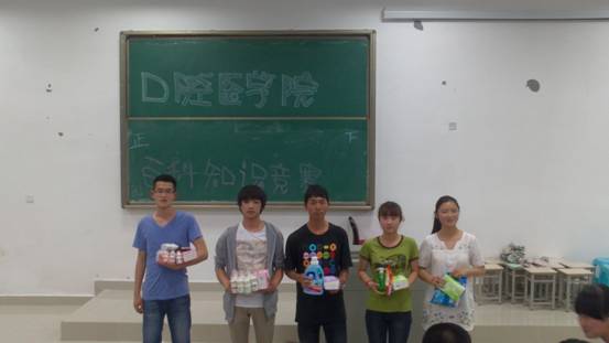 为了拉近同学们的距离,团结班级凝聚力,拓展同学们的知识面和相互协作能力;公司编辑部特于2013年5月22日晚七点半在花溪校区1603教室举行了百科知识竞赛。此次活动以寝室为单位;进行了抢答赛、抽题赛、你画我猜、撕报纸以及复活赛抢凳子等环节。