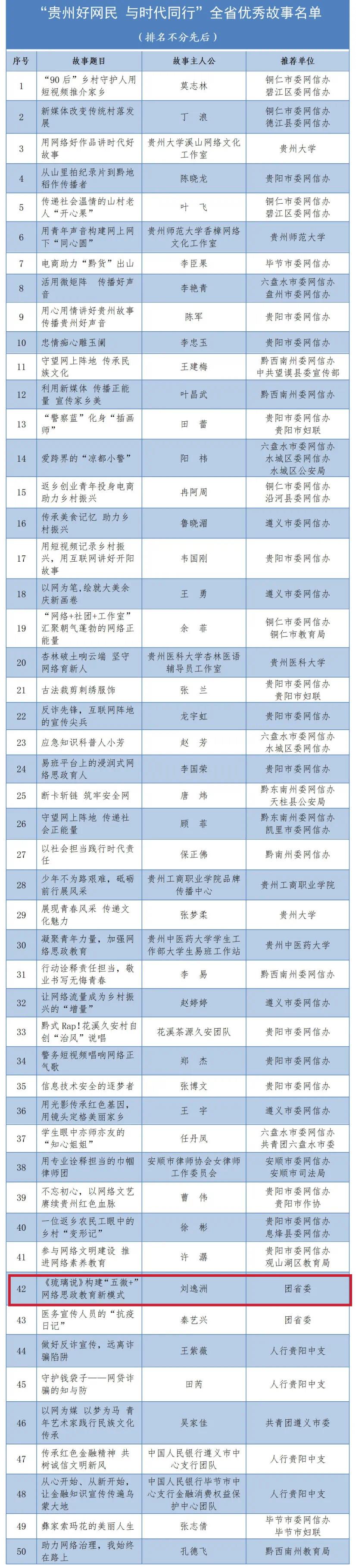 为加强网络文明建设,深入实施争做新时代贵州好网民工程,贵州省委网信办、贵州省精神文明办、贵州省教育厅、贵州省总工会、共青团贵州省委、贵州省妇联、人民银行贵阳中心支行等七部门联合举办了“贵州好网民 与时代同行”优秀故事征集展播活动。活动开展以来,全省各地各部门和广大网民积极响应、热情参与,共收到好网民故事300余件,生动、鲜活地展示了新时代贵州好网民的品格风尚和网络素养,为网络文明建设和好网民培育营造了良好氛围。