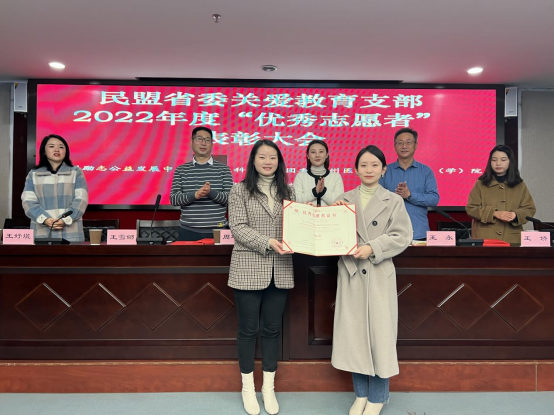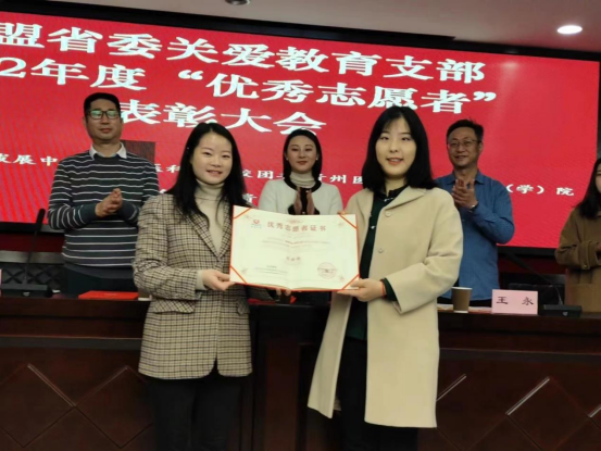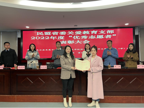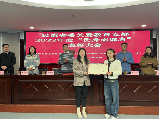 贵州省励志公益发展中心党支部书记王雪娜,民盟贵州省委关爱教育支部主委、贵州省励志公益发展中心秘书长周巧明对荣获2022年度“优秀志愿者”荣誉称号的同志表示祝贺,希望在新的一年里,继续在支医支教、教育扶贫及关爱空巢老人、留守儿童领域深入合作,共同助力乡村振兴。