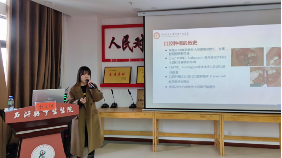 讲座于上午9时在石阡县中医医院13楼会议室举行,毛岭、姜炜鹏、宋彦蓉、王婷婷、李文凤分别以“口腔修复科简介”“数字化技术在口腔种植手术中的应用进展”“综合急诊科科室简介”“预防及儿童口腔科科室简介及诊疗范围”“口腔种植患者的护理”为题作专题培训。石阡县中医医公司党委书记王忠强主持讲座,经理徐明芬及医务部、院办工作人员和各临床科室医务人员共百余人参会学习。