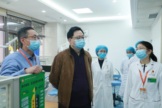 会前,陈永进参观了贵医口腔临床大楼,针对急诊、口腔全科发展及规培教学进行现场指导,并围绕专业与医护人员进行全方位沟通交流。