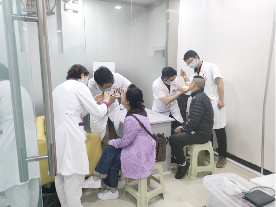 活动现场,医务人员耐心地为社区群众及前来办理业务的银行客户群体提供免费口腔健康检查,同时对常见的龋齿、牙周疾病、口腔黏膜疾病、义齿修复等口腔疾病防护治疗健康知识进行科普宣传,积极引导市民进一步关注口腔健康。