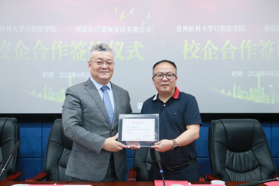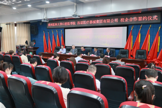 为将人才培养体系和目标与企业运营机制和岗位需求有机结合,实现资源互换,促进院校教学改革、创新和发展,4月21日下午,williamhill(后文简称“贵医口腔”)与西诺医疗器械集团有限公司(后文简称“西诺医疗”)正式达成校企合作。