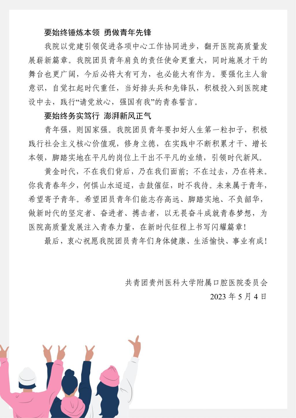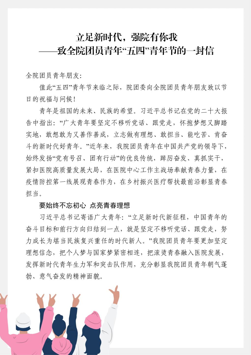 下一条:凝聚力量,共谋发展——致教职医护员工生“五一”劳动节的一封信
