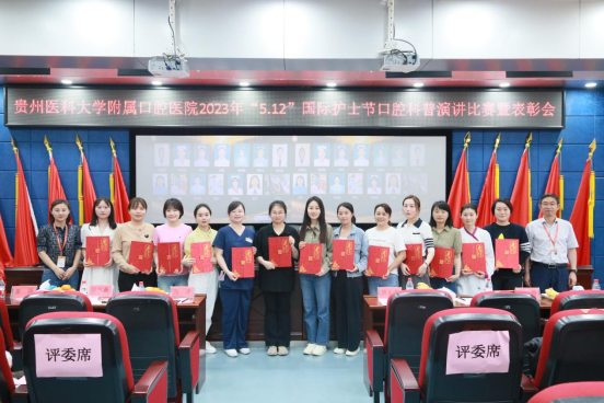 为传承与弘扬南丁格尔精神,丰富护理工作内涵,5月6日,在第112个国际护士节来临之际,公司在学术报告厅举行以“科普促健康,携手向未来”为主题的“5·12”国际护士节口腔科普演讲比赛暨表彰会。院党委副书记、经理马洪,副经理唐正龙,党委副书记何雨羲及董强、刘洪静、卢虹、吴亚东、陈仕红、吴姗担任评委,各临床科室主任和来自12个科室的参赛选手参加会议。