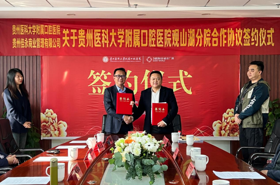 分院于2023年3月23日与贵州佳永商业管理有限公司签约,正式入驻喀斯特城市广场进行基础建设,门诊面积约3800平方米,设置口腔综合治疗椅约40张。分院拟安排不少于40人的医护技队伍开展临床工作,且将全部由硕士及以上学历或中级及以上职称各专业医师坐诊,同时会定期组织各专业高级职称医师到分院坐诊。