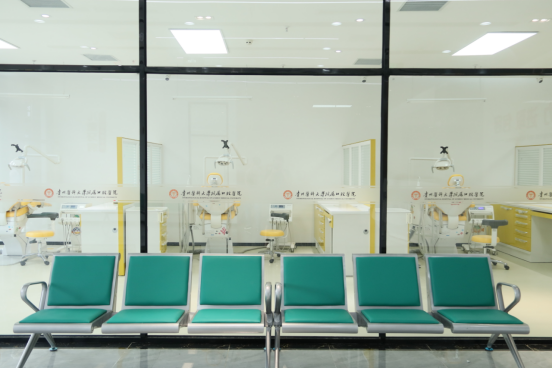 贵医口腔观山湖院区始建于2023年3月23日,门诊面积约3800平方米。配备有牙科治疗椅39台,单椅建筑面积不少于40㎡,医护比超过1:1.03,坐诊医师均为硕士及以上学历或中级及以上职称,医院本部高级职称医师会定期到分门诊坐诊,充分实现优质资源共建共享。