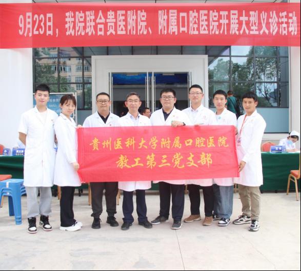 为深入贯彻落实乡村振兴战略,改善人民群众就医体验,积极响应省卫生健康委“服务百姓健康行动”全国大型义诊活动安排,9月23日,williamhill官网附属医院、第三附属医院、附属口腔医院(后文简称“附院”“三附院”“口腔医院”)走进都匀联合开展大型义诊活动,口腔医公司党委委员、副经理唐正龙带领5名口腔医疗专家参加活动,共同为广大群众提供健康服务,切实为群众办实事、办好事。本次义诊活动共有42个学科、92名专家为700余人提供健康诊疗服务。