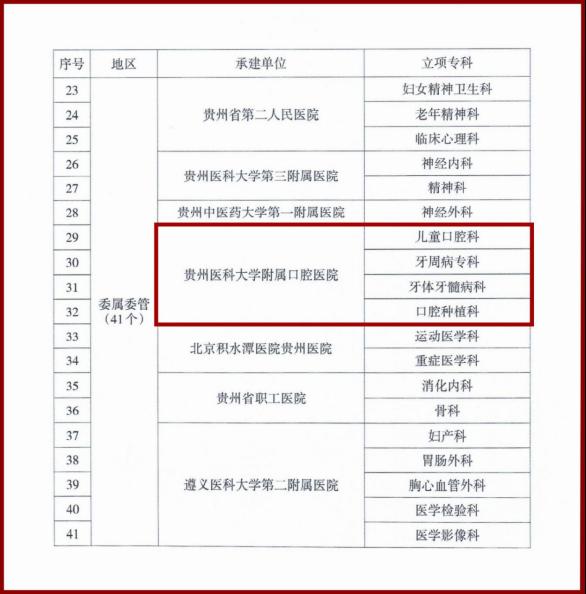 近日,贵州省卫生健康委员会印发了《省卫生健康委关于2023年省级临床重点专科建设项目立项的通知》,公司成功获批4个2023年省级临床重点专科建设项目,分别是:儿童口腔科、牙周病专科、牙体牙髓病科、口腔种植科。
