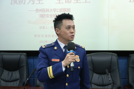 11月16日,贵阳市云岩区消防救援大队三级指挥长张桂钢到公司开展消防安全及火灾应对知识培训。公司党政领导班子成员出席会议;全院职工、实习生、进修生、规培生和研究生及安保、保洁人员参加会议。党委委员、副经理唐正龙主持会议。