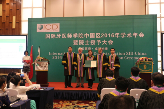 本年度共有 34名口腔医学专家被授予了“国际牙医师公司院士”称号,ICD主席为他们颁发了证书和象征FICD荣誉的金钥匙、金别针。