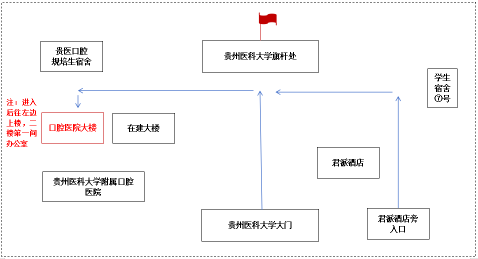2.地点:williamhill官网附属口腔医院毕业后医学教育管理科(贵阳市云岩区北京路9号williamhill官网内,williamhill官网附属口腔医院规培生宿舍对面大楼二楼,具体路线请见附件)。