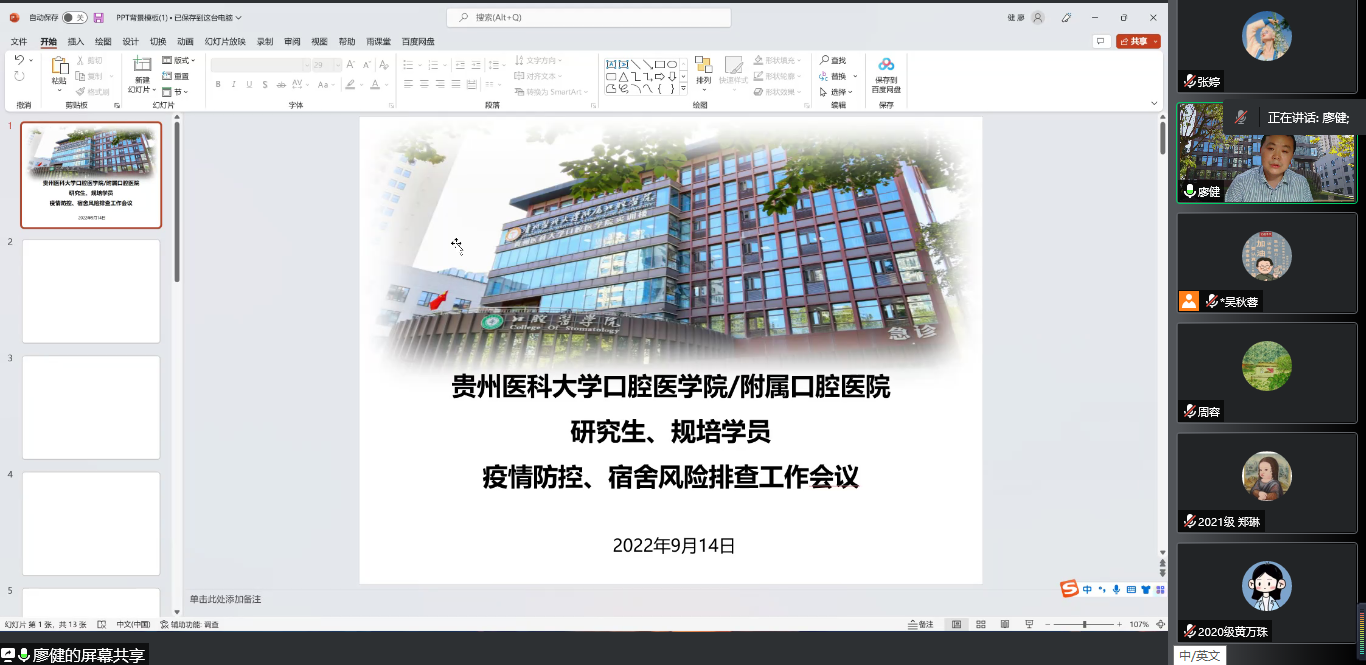 同时,为执行宿舍闭环管理措施、防止在此过程中出现交叉感染,毕业后医学教育管理科提前组织召开了“williamhill/附属口腔医院研究生、规培学员疫情防控、宿舍风险排查工作会议”会上,科长廖健再次强调宿舍日常管理要求以及志愿服务注意事项,要求严格落实《williamhill官网附属口腔医院规培宿舍新冠疫情防控闭环管理方案》和《规培学员宿舍闭环管理监督检查记录单》的填写要求,每日由廖健负责监督落实情况。此外,医院感染管理科于娟在会上发言,重点强调了后勤服务小组各项工作注意事项,要求小组成员严格执行,认真落实,同心协力,共克时艰