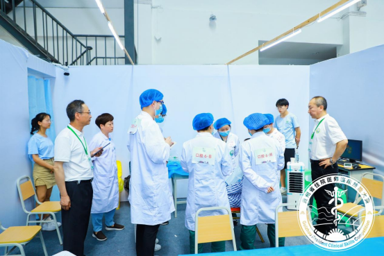 公司11名专家王永、廖健、吴亚东、宋具昆、谭旭、付雪飞、王珣、王婷婷、陈河林、莫朝伦、宋彦蓉受邀担任大赛裁判,带教老师李毓勤及住院医师王亚静、王欢、黄志才、解瑶、罗云彩、李光尧、吴雪参赛。比赛由毕业后医学教育管理科科员吴秋蓉带队。