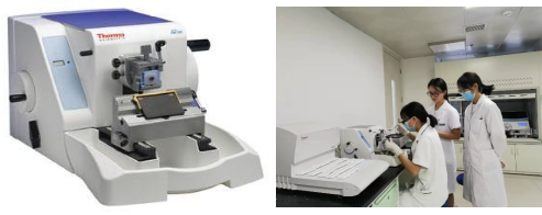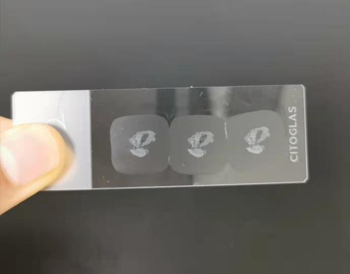 包埋好的蜡块在技术人员熟练的技术下切成25μm的白片。