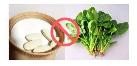 菠菜中含有大量草酸钾,进入人体后电解出草酸根离子会沉淀钙离子,从而妨碍人体钙的吸收,还易生成草酸钙结石。