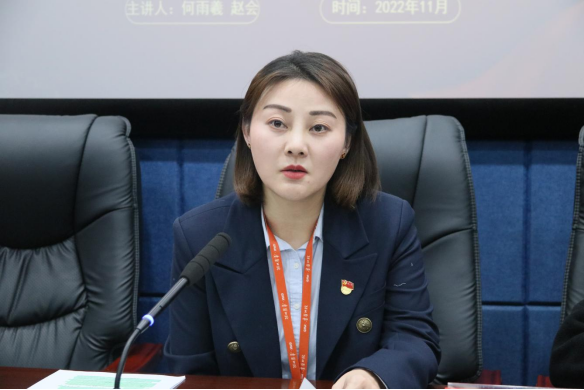 党委书记张军梅与教工第五党支部书记朱铭慧以“二十大精神一起学-实施科教兴国战略,强化现代化建设人才支撑”为题作宣讲,主讲人深入浅出地解读了党的二十大报告“实施科教兴国战略,强化现代化建设人才支撑”专节,结合近年来公司高位推动教育科技人才工作的实践,围绕“立足新时代新征程党的历史使命,如何充分发挥人才作为第一资源的作用,如何服务社会抓落实,办人民满意的大学、办人民满意的医院,不断提高服务社会的能力”等内容展开对话和讨论。