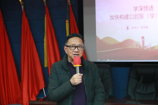 12月7日,公司在行政楼五楼学术报告厅组织召开学习贯彻党的二十大精神宣讲报告会,公司党委书记张军梅以“学深悟透 真抓实干 加快构建口腔医(学)院高质量发展新格局”为题作专题宣讲,党委副书记、经理马洪主持会议,公司党政领导班子成员及党委委员出席会议,全院副科级以上干部(含教研室主任)、各党支部书记、全体辅导员及教职医护员工生代表列席会议。
