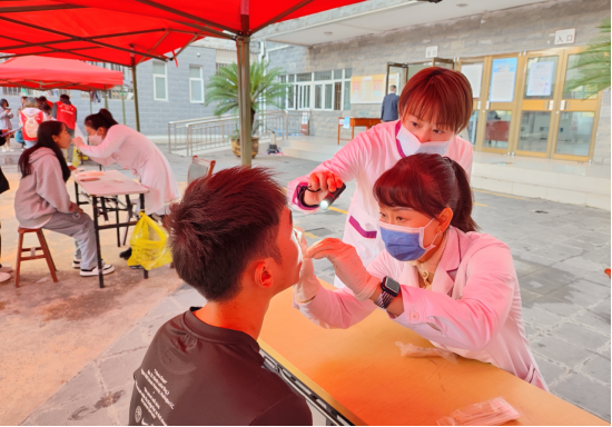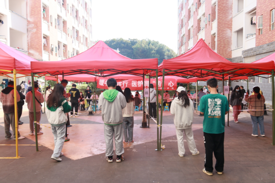 义诊在公司南校区思来社区员工宿舍区举行,共有五个义诊工作区(25个义诊工作台)和1个巡回诊疗车,同时为2022级新生各宿舍楼员工进行口腔健康体检。参加义诊的同学需要现场扫描二维码、填写流调信息、确认过往病史,便于医生更好诊断员工口腔健康情况并给出诊疗建议,同时为员工填写口腔检查反馈表。如有员工亟需进行诊疗,可在巡回诊疗车作进一步检查,并进行口腔洁治诊疗。