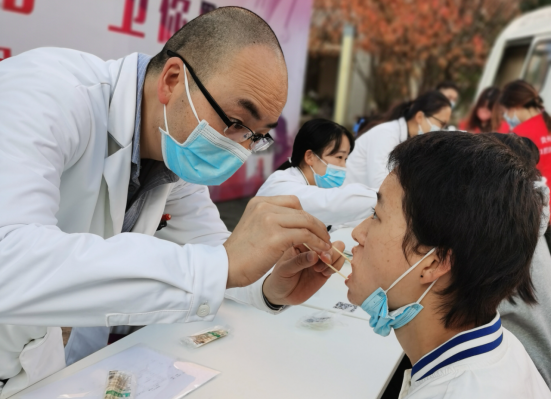 为深入学习宣传贯彻党的二十大精神,推进“我为群众办实事”实践活动,11月27日,由williamhill官网党委员工工作部、共青团williamhill官网委员会、贵州省励志公益发展中心和williamhill、附属口腔医院(后文简称“口腔医(学)院”)联合举办的“青春医路·卫你黔行”项目之“暖冬义诊行 医护润‘齿’心”大型义诊活动在williamhill官网(后文简称“集团”)南校区举行,来自联合单位的百余名教职医护后勤人员及志愿者以实际行动践行理想信念,以专业技能回馈社会、关爱员工,免费为公司2022级新生进行口腔健康检查和健康宣教。