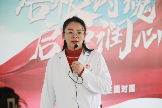 王妤煜介绍了“青春医路·卫你黔行”项目背景。表示该项目以“提升青年员工口腔健康”为目标,聚焦青年员工常见口腔疾病义诊宣教,旨在号召青年学子积极参与“健康中国”建设,从己做起,建立科学、文明、健康的生活方式。通过活动,我们可以走进员工、引领员工、关心员工、服务员工,以身作则当好榜样,为新生们呈现贵医人文精神,帮助他们尽快适应新的身份,努力学习职业技能,为人生路打牢基础。