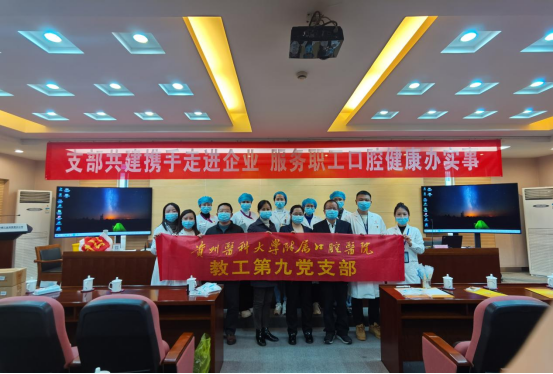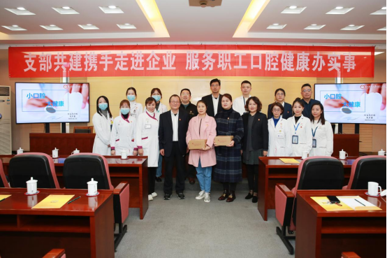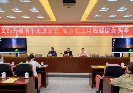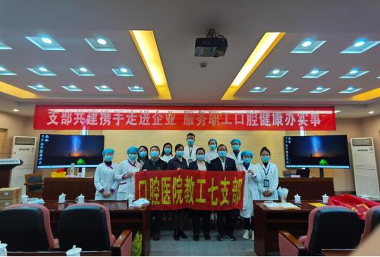 11月15日下午,口腔医院教工第七党支部、第九党支部联合中烟集团机关第八党支部举行了一场“支部共建携手走进企业,服务职工口腔健康办实事”主题党日活动。活动现场严格落实疫情防控要求,秩序井然。