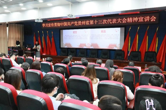6月8日下午,公司在行政楼五楼学术报告厅召开学习宣传贯彻中国共产党贵州省第十三次代表大会精神宣讲会。宣讲会由党委书记张军梅主讲,党委副书记、经理马洪主持。公司党政领导班子成员及党委委员出席会议,全院副科级以上干部、全体党员、各民主党派人士、员工党员代表参加会议。