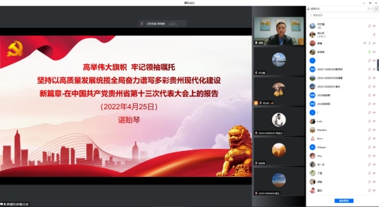 研究生党支部以“同频共振 牢记领袖嘱托 奋力谱写多彩贵州新篇章”为主题进行学习研讨。陈培各从教育工作者角度出发,表示要立足贵医发展,贯彻落实“立德树人”根本任务,为贵州建设培养医疗卫生人才;邓文磊从科技创新角度出发,倡议全体研究生扎根科研,诚信为本;郑琳、王欢分享了十九大以来,对贵州高速发展的切身体会;廖健希望williamhill研究生在党的旗帜下,增强做中国人的志气、骨气、底气,自觉把青春奋斗融入党和人民事业,在多彩贵州现代化建设新征程中放飞青春梦想、实现人生出彩!