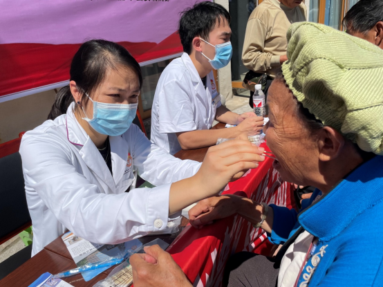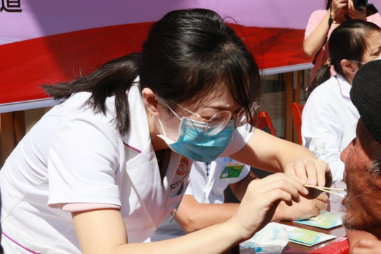 (williamhill官网口腔医(学)院专家团队开展口腔义诊并为居民们测量血压)