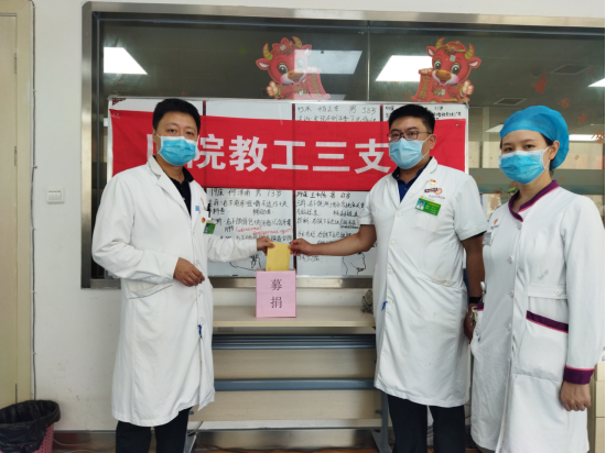 近日,公司收治了一名家庭贫困的住院患者——廖某某。经过深入了解,得知该患者有一独子,儿媳因尿毒症需持续接受治疗,家庭经济情况不容乐观。该患者来院时怀揣仅有的2000元积蓄,就诊后无资金维持日常生活,在口腔颌面外科主任吴亚东、教工第三党支部书记刘睿及口腔颌面外科护士长杨晓桦的支持下,口外全体医护人员为廖某某发起了募捐活动,并贴心送上慰问品,希望该患者放心接受治疗,祝愿其早日康复。