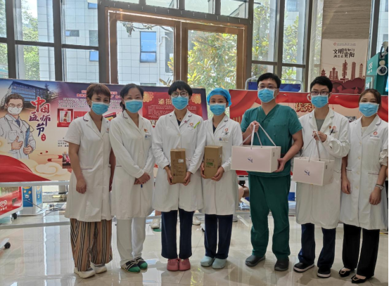 活动当天,工会与医务科为全院医务工作人员分发了慰问物资,感谢大家在临床岗位上孜孜不倦地践行使命、全心全意地为人民健康服务,希望全体医务人员以医者担当践行初心使命,做好守护人民健康的忠诚卫士,为医院改革和创新发展做出新的贡献,向建党100周年献礼。