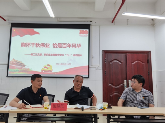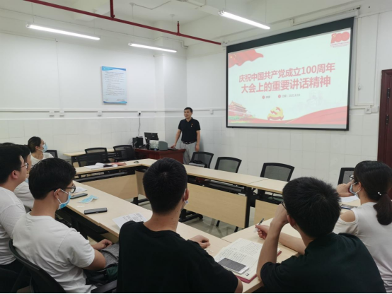 会上,廖健以四个伟大成就、伟大建党精神、九个必须为切入点讲“庆祝中国共产党成立100周年大会上的重要讲话精神”专题党课,希望公司研究生党员以实现中华民族伟大复兴为己任,增强中国人的志气、骨气、底气,不负时代,不负韶华,不负党和人民的殷切期望。随后,党员同志们与会交流发言。