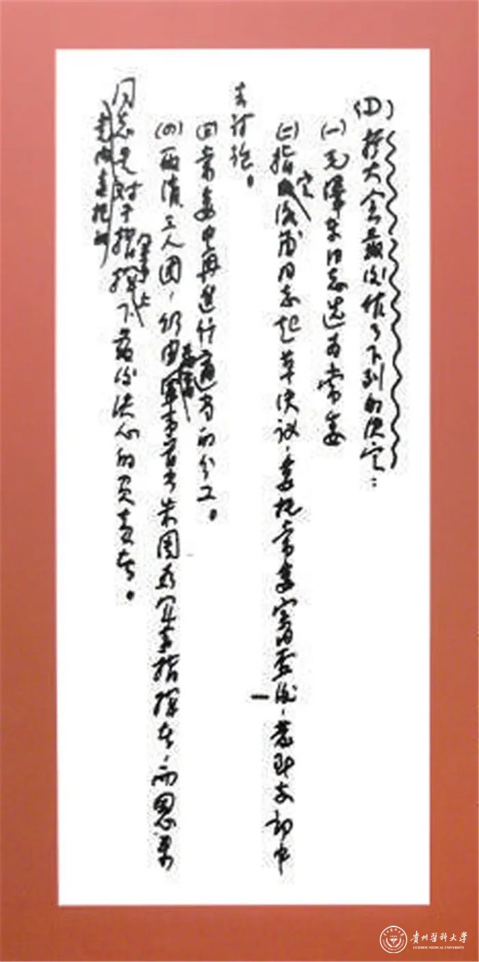 展出的两页纸上,记录了1935年中央红军一渡赤水时,朱德向全体指战员的讲话内容——