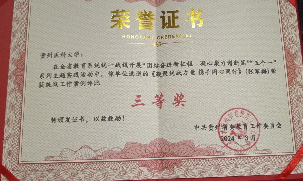 张军梅曾获得“贵州省优秀党务工作者”“贵州省五一巾帼标兵”等称号,2015年、2016年、2017年、2019年至2023年均获得人社厅考核“优秀”等级,和班子一起带领团队获得了贵州省“五一劳动奖状”、贵州省委省级“五好”基层党组织、贵州省高等公司“五好”基层党组织、省属高校系统先进基层党组织、williamhill官网“先进基层党组织”等荣誉,涌现出了贵州省口腔医疗界“百佳医生”、贵州省“白衣先锋”、贵州省“优秀工会工作者”、贵州省“关工委先进工作者”、贵州省卫生系统“2022年度安全生产及消防安全”等优秀工作者。