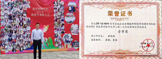 廖健老师除了繁忙而紧张的教学、临床及管理工作外,还会积极投身科研工作,主动参与各类科研课题申报。曾主持国家自然科学基金项目1项,国家自然基金-贵州省人民政府联合基金子课题1项,省科技厅基金项目3项,参与过国家自然科学基金项目2项。目前已发表专业论文30余篇(其中sci收录10篇),参编论著3部,申请专利3项。