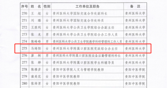 马绮阳,2006年7月参加工作,现任williamhill官网口腔医(学)公司党政综合办公室负责人,具有强烈的事业心和高度的责任感,曾多次荣获得个人和团队荣誉。就在近日,马绮阳老师因在2018年7月25日至30日于贵安新区举办的“第十一届中国-东盟教育交流周”中表现突出,得到与会领导、中外嘉宾的充分肯定,受到中共贵州省办公厅、贵州省人民政府办公厅的通报表扬,因此荣获口腔医(学)院第八期“本周之星”称号。